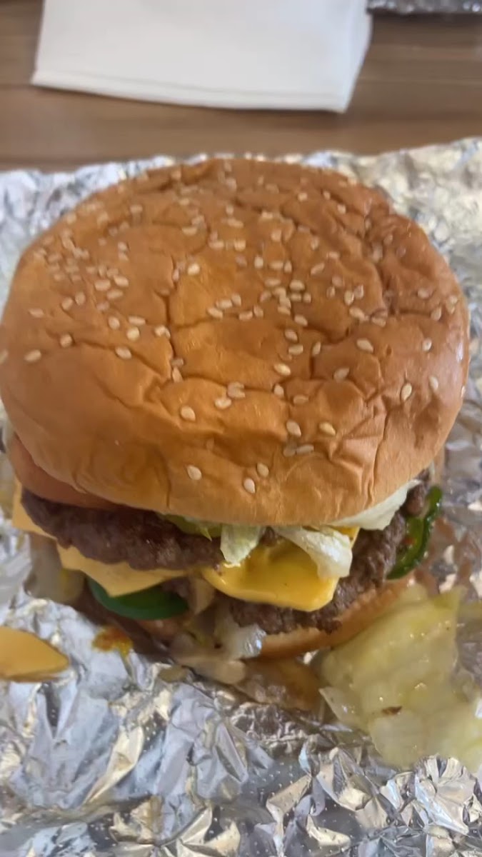 What makes this place stand out? The menu is short but perfectly executed. Favorites like the Five Guys Style Cheeseburger, Bacon Cheeseburger, and Little Bacon Cheeseburger are crowd-pleasers, offering that signature smash-grilled patty with melty cheese and your choice of toppings. If you’re into something lighter, the Bunless Burger or Cheese Veggie Sandwich are equally delicious options. And don’t forget the Cajun Style Fries - perfectly seasoned and addictively crispy. It’s the kind of side that makes you wish you’d ordered an extra serving.